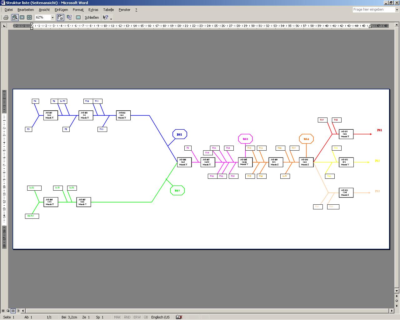 - Teste die eingegebenen Stammdaten durch Überprüfung der Strukturstücklisten (passender wäre hier der Begriff Strukturfertigungslisten) P1, P2 und P3.